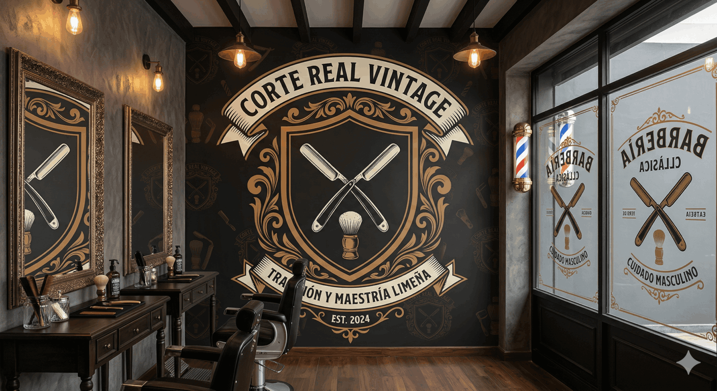 Esta propuesta es para los que respetan la vieja escuela con un toque de elegancia pura. Vamos a transformar tu barbería en una joya clásica que evoca la maestría de los antiguos barberos limeños.