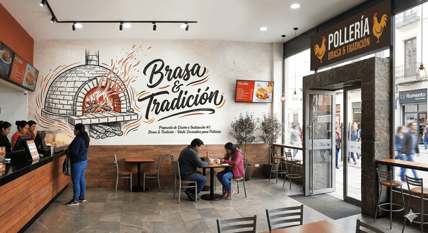 ¡Habla, sobrino! Si tu local tiene ese aroma que enamora pero tus paredes están más pálidas que pecho de pollo, estás perdiendo plata. En una pollería, el ojo también come; por eso, un buen vinil de pollería es el secreto para que la gente entre por el sabor y se quede por el ambiente.
